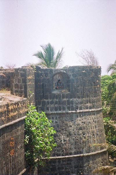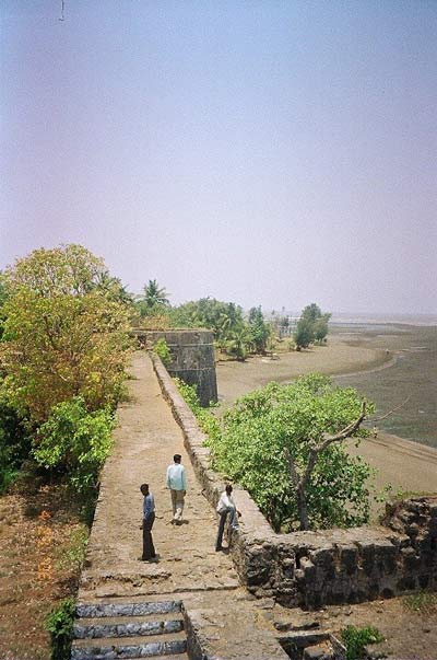 In 1516, a local chieftain in Gujarat, Sultan Mahmud Begda originally constructed the fort on the island, strategically located at the mouth of the Vaitarna river. In the 1530s, the Portuguese had established their operations in the coastal area headquartered at Fort Bassein and soon gained control of the island. The Portuguese captain of Bassein donated the island to a Portuguese nobleman who tore down the old fort and began construction of 700x700 foot fort. Though fort was never completed by the nobleman, it remained under Portuguese control for 2 centuries, who used it to control shipping and navigation along the northern Konkan coast. During the late 1600s and early 1700s, after a long struggle with the Mughal Empire, the Maratha Confederacy came to dominate present day Maharastra. In 1737 the then Peshwa Baji Rao I sent his brother, Chimaji Appa, to take the Bassein Fort from the Portuguese. After winning the Battle of Vasai, his general, Shankarji Pant, persuaded Chimaji to launch an assault on Fort Arnala, for its strategic importance to the Maratha navy in assaulting Portuguese interests. Their first assault, coordinated with a Maratha naval force commanded by Manaji Agre, was routed by a superior Portuguese naval force. A second assault on the fort on March 28, 1737, caught the Portuguese by surprise and forced them to abandon the fort. The victory was commemorated by a plaque installed on the northern wall of the fort and is still visible today. Marathas then rebuilt the fort, constructing three bastions Bahirav, Bhavani and Bava. The Marathas controlled the fort until 1817 when, during the third British-Maratha war, despite successfully defending the fort, they were forced to surrender the fort to the British due to their superior naval power. The Arnala and Bassien forts were returned to the Marathas by the British in the treaty of Salabai, but the forts again changed hands under the treaty of Pune. Today the fort is in a state of disrepair. Once you hit Arnala beach you turn towards the right side where you see the fishing boats in the distance.But this landmine-laden area soon passes and you reach the ferry. There's a ferry which takes you across to the island. Be sure to time your arrival because the ferries are at hourly intervals or even more. There is one at 12 noon which is quite convenient if you are planning a trip. A 5-10 minute walk through the village takes you to the fort entrance. The fort walls are in a fairly good condition even today. Once you enter the fort to the right, there are stairs which take you up on the fort wall itself. There is a 8-10 feet wide route all along the fort wall. The best part about this island is that its so small that you see the sea up close from wherever you are standing on the fort wall. |