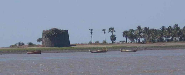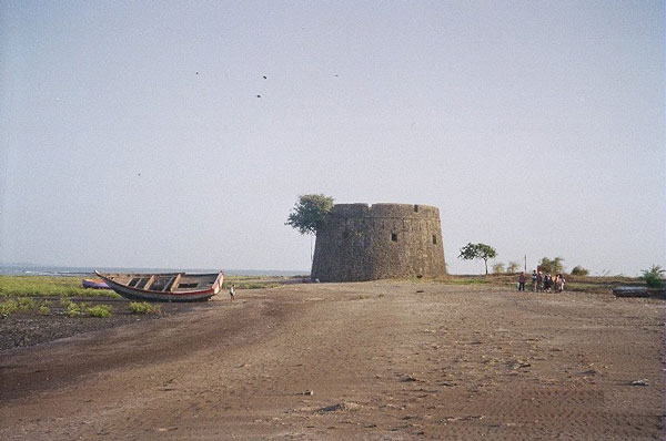 Towards the southern tip of the island there is a very interesting watch-tower standing in quiet isolation. As you approach it you intuitively look for an entrance. But even when you are done going round it it will leave you puzzled because there simply is not any entrance. There is a small opening at the base though which goes 4 feet in and then there is a circular passageway through which one would need to crawl to go ahead. According to the locals, there are cannonballs stored inside. Arnala Lighthouse is about 10 km West by road from Virar Railway station (Mumbai-Surat Trunk Route). Regular transport is available from Virar for proceeding to Arnala. There is a pucca road up to the lighthouse. The coast is about 300 m away from the lighthouse. |