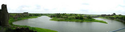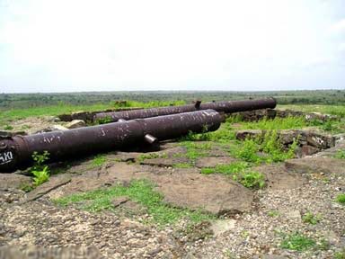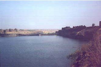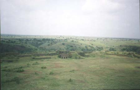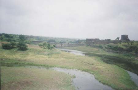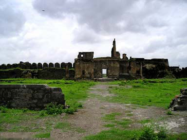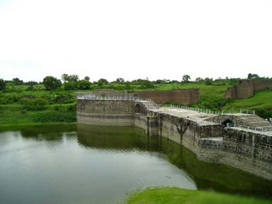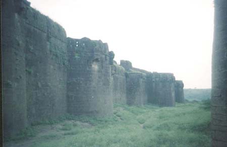 | The interior portion of the fort is enclosed within ruined walls. There are many bastions in the fort. The Upli Buruj is the highest point in the fort. There are several buildings in the fort which are now in ruins. The dam constructed across the Boru River which connects the fort and the Ranamandala, is worth visiting. The dam and the Pani Mahal were constructed during the reign of Ibrahim Adil Shah II. |