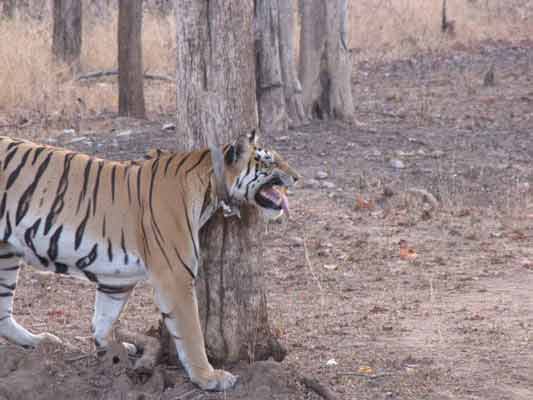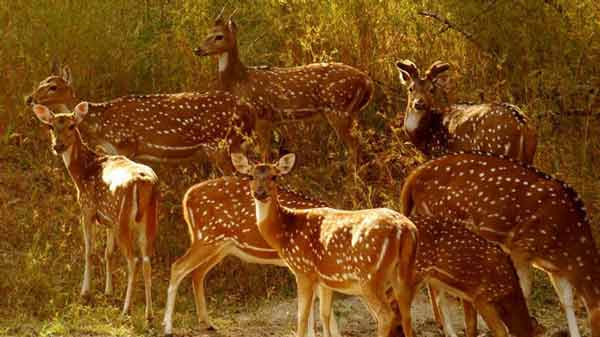 The Pench National Park on the border of Madhya Pradesh and Maharashtra has been known through the ages for its rich flora and fauna.A total of 758 Sq. kms of this Southern Indian tropical moist deciduous forest has its extent mingling with the tropical dry deciduous teak. The area is crisscrossed by a number of streams and 'nallahs' most of which are seasonal. Though the Pench River dries up in April end, a number of water pools locally known as 'dohs' are found which serve as water holes for the wild animals. The Pench Reservoir at the center of the park is the only major water source during the pinch period. In Pench National Park, Cheetal, Sambar, nilgai are commonly seen grazing on the open sites on roadsides and banks of river & reservoir. Jackals can be seen in search of food anywhere in the Park. Packs up to 15 of wild dog can be seen near Chhedia, Jamtara, Bodanala and Pyorthadi areas of the Reserve. Herds of gaur can be spotted near streams and bamboo patches commonly in summer months. Sloth beer occupy hilly, rocky out crops and favour mahul bel infested forest. Chnkara is present in very small numbers and is found in open areas around Turia, Telia and Dudhgaon villages. Langoors are very common in Pench, whereas the Rhesus monkeys may be seen occasionally on the fringes. Pench boasts of, more than 210 species of birds that include several migratory ones also. Commonly seen are Peafowl, Red jungle fowl, Crow pheasant, Crimson breasted barbet, Redvented bulbul, Racket tailed drongo, Magpie robin and lesser whistling teal. http://en.wikipedia.org/wiki/Pench_National_Park