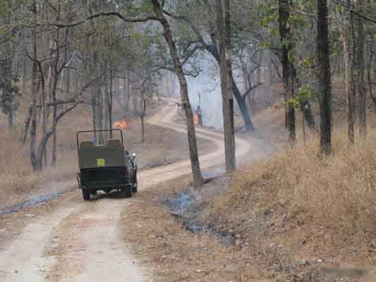Sitaghat: Alikatta: Bodhanala range: Raiyakassa : This is the location of a watchtower built by the park authorities. The roof of this cement watchtower provides and excellent view of the river pench. The park authorities also offer visitors the choice of spending a night at this watchtower. The facilities are extremely basic but any night spent on that roof will be embedded in the visitor's memory forever for sure. It is quite common to spot Bison coming down to the river here. On occasions, a tiger too has been spotted from this spot. Doob Road : This track running close to the edge of the water bodies is an excellent area for spotting all varieties of animals. After the monsoon season however, most of it is submerged until the water levels once again recede. During the rest of the year, it is quite common to come across huge herds of deer and bison, while driving along this track. Leopards have also been seen in this area. |