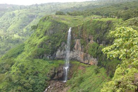 Arthur's Seat, 12 km from Mahabaleshwar, looks out over a sheer drop of 600 meters to the Konkan coastal strip Mahabaleshwar: Dudhsagar waterfall, Thoseghar waterfall, Lingmala fall, Dhobi waterfall, and Chinaman's waterfall are the important waterfalls in Maharashtra. Dudhsagar waterfall, situated at Someshwar is a favourite destination for youngsters where they come often to liven up their spirits. This is one of the best picturesque spots in Nashik. The waterfalls are 10m long and the water is milky white, so it is called Dudhsagar waterfall. Thoseghar, near Satara is famous for its serenity, clam and quiet nature. It is a newly developing picnic spot. Thoseghar is really a wonderful place where one can enjoy the beauty of the nature. July to November is the best season to visit Thoseghar. Dark woods and a clean lake add to the beauty of this hilly region. There are also other small waterfalls here, which are about 15-20 meters high. The highest one is of around 500 meters. Satara is on the Pune - Bangalore Highway, and is about 115 km from Pune. The Mahabaleshwar Temple and the Gokarna Temple of Mahabaleshwar attract visitors from all over India. The Gokarna Temple has the statue of Lord Mahabali, an incarnation of Lord Shiva, in a linga form which is considered the holiest of the 12 Jyotirlingas of India.