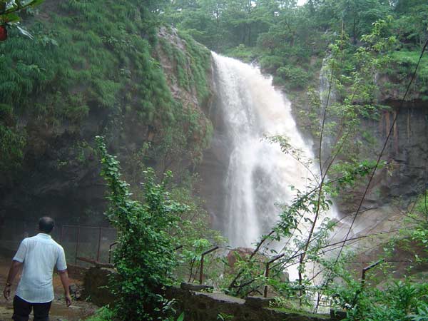 | Pandavgad Waterfall is a picturesque waterfall situated in the hills near the Thane-Belapur road. The water falls from a height of 350 ft and tumbles down a sharp edged mountain. A cave is situated half way down the waterfall, which can be easily reached by a dusty path. A small waterfall called Nangrya is situated beside the main waterfall.Pandavgad, situated near Wai is easily identified due to its peculiar structure. The mountain on which the fort is built looks as if it is crowned by rocky surface. It is very near to Wai village and is situated on the Wai - Maandhardev route. There are good sights near by this place. |